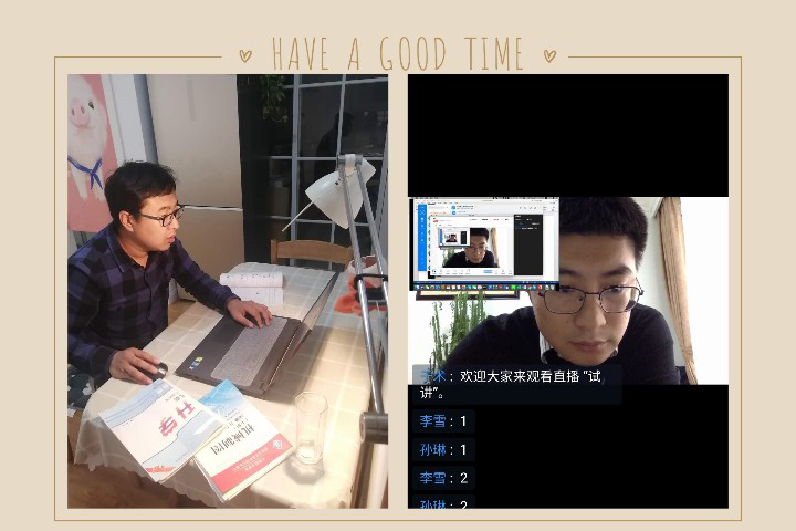 全體教師開(kāi)啟家庭辦公模式,定計(jì)劃、搞研討、做課件、錄網(wǎng)課、搞直播,忙碌而有序地開(kāi)展各項(xiàng)工作,最快速度地完成網(wǎng)課開(kāi)始前的準(zhǔn)備。